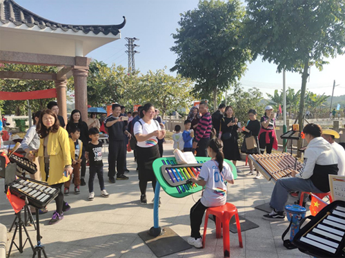 在本屆音樂節中,主辦方不僅邀請到本土樂隊、音樂人盛情出演,更攜手笛馳敲擊樂,讓五彩的樂器進駐音樂節。小鐘琴、非洲鼓等笛馳戶外樂器悉數出席,現場“大小朋友”在老師的指導下輕松掌握其中的演奏秘笈,共同在這金色的田野邊上奏響一曲又一曲的“豐收贊歌”。琴鍵與敲擊錘發生碰撞,一陣清脆悠揚之聲便在空氣中暈染開來,感染著每一位稻田上的人。