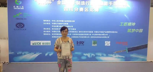 近日,長虹精密電子制造廠返修員工戴金巖在參加“快克杯”全國電子制造行業焊接能手選拔賽中,獲四川賽區“最佳工藝獎”殊榮。