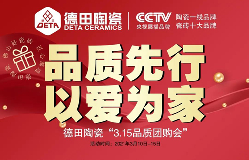 3.15作為新年過后的第一個促銷節點,德田陶瓷《品質先行 以愛為家》活動盛大開啟,五重豪華禮,助力客戶開啟美好新生活,開門第一紅,品質團購會,致敬315,鉅惠全城。