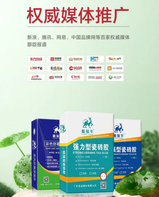 面對白熱化的市場競爭,打造強有力的品牌是突出重圍、化險為機的關(guān)鍵。作為瓷磚膠領域的卓越品牌——瞻貼牛,在保證高效率生產(chǎn)及正常運營工作的基礎上,如火如荼地啟動了品牌營銷推廣戰(zhàn)略,攜手國內(nèi)知名品牌營銷公司,與各大主流媒體達成合作,做好卓越的宣傳,促進品牌造勢,形成爆炸級的口碑效應。
