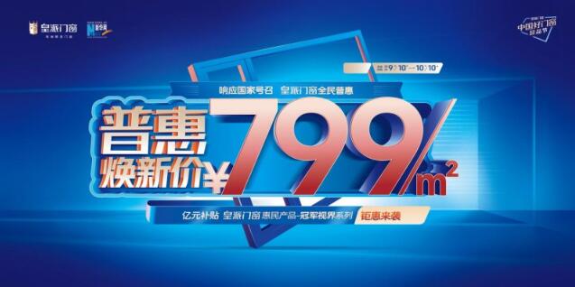在高端產品線的基礎上,皇派門窗應用高質價比的爆款策略,順應理性消費大勢。目前,皇派門窗聯合全國經銷商城市巡回開展“中國好門窗,皇派真普惠”主題活動,在成都、貴陽、濟南、南昌、南寧、沈陽、蘇州、岳陽等百城先后落地。同時,皇派門窗以重金推廣補貼加碼經銷商營銷,799元/㎡普惠煥新廣告大規模鋪開,實現全國超80座城市重點家居賣場、核心交通樞紐等戶外覆蓋,強覆蓋力度引流,實現對終端門店的精準賦能,掀起中國門窗煥新熱潮。