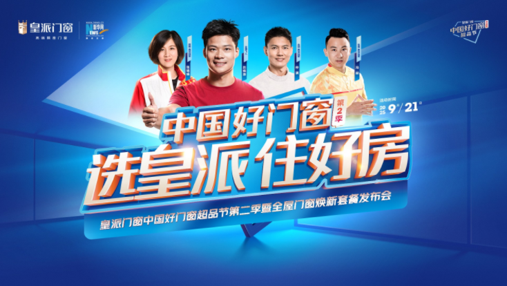 本次皇派門窗也將于9月21日,攜手權威央媒新華網,重磅啟幕皇派門窗中國好門窗超品節第二季暨全屋門窗煥新套餐發布會,集結“亞洲飛人”蘇炳添、體操奧運冠軍馮喆、擊劍奧運冠軍仲滿、射箭奧運冠軍張娟娟組成的冠軍天團,并匯聚行業權威領袖,共同打響“好門窗賦能好房子品質升級行動”的新篇章,為品質人居建設注入新動能。