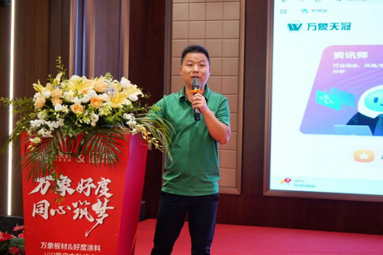 旺德府家居集團大客戶業務中心總經理湯科先生,圍繞政策與產品賦能體系進行詳細解讀。在闡述品牌及核心產品競爭優勢的同時,重點強調板材+輔材的產品推廣布局,明確以此助力品牌與合作伙伴共同開拓高端家居市場。