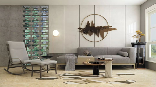 獨特質感的紋理,讓空間變得富有想象力, 而高雅的色調彌漫一股清冷的氣息,為炎熱的溫度注入一絲清涼。