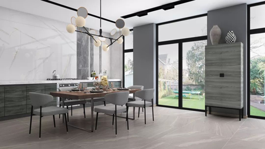 王者柔光磚系列,采用柔拋護瞳科技,50°柔光效果讓磚面光感更柔和,貼近真石,營造更健康舒適的視覺之美。