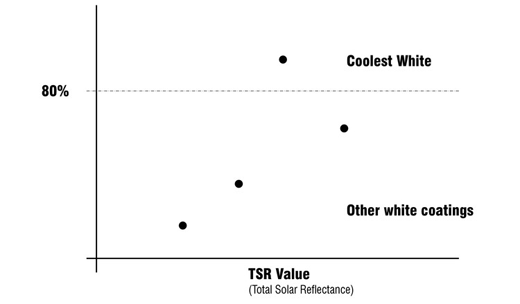 用于建造城市建筑物的深色材料是城市積累熱量的主要原因之一。較深色的材料吸收高達95%的太陽光線并將其直接釋放回大氣層,正常的白色表面可將此值降低至25%。現在,The Coolest White 創造了有史以來第一次將吸收和排放量降低到12%。