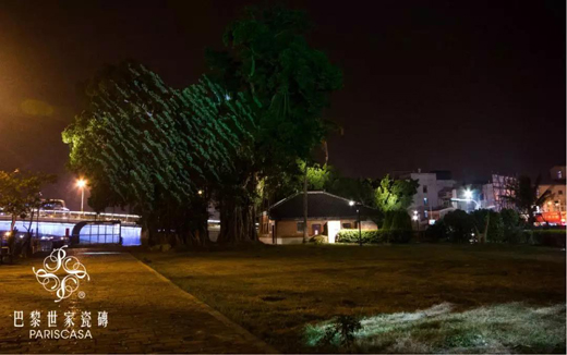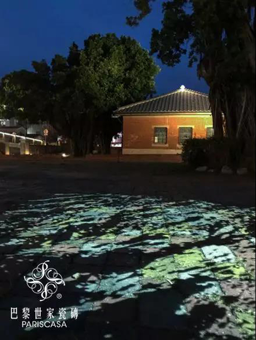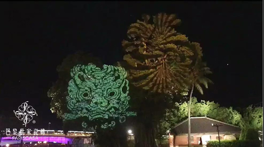 在黑夜中點點散落的燈光,散發(fā)著朦朧柔和的光暈,燈光投射在古樹上,顯現(xiàn)清晰的古代圖案,是歷史的符號,是時代的記憶,這是與文化傳承的完美結(jié)合。