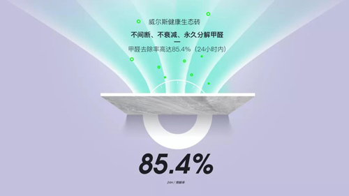 為此,威爾斯陶瓷聚焦消費者痛點,研發出目前行業內罕見的可以針對不同位置,降解甲醛高達85.4%的瓷磚產品——布拉諾系列,貨真價實安全高效持久的降解甲醛瓷磚。