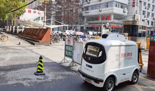 京東物流的配送機器人也被派上前線,進行醫療和生活物資輸送到各個救治醫院。
