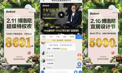 再比如,家居企業、甚至經銷商都開始嘗試直播銷售,嘗試短視頻如抖音、快手營銷,導購的線上營銷、在線培訓等也快速開展起來。據了解,在2月11日博洛尼的線上直播中,多達10566組客戶在線參與,在線成交8691單。