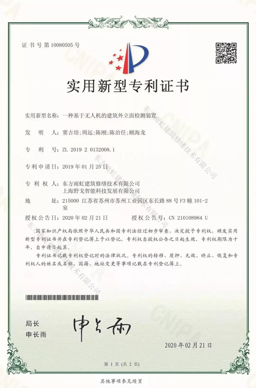 2020年3月,北京市住建委與東方雨虹(ORIENTAL YUHONG)建筑修繕簽署關于“建筑防水與外墻飾面檢測評估智能診斷系統(tǒng)應用研究”項目的技術開發(fā),包括對檢測評估智能診斷系統(tǒng)的完善,項目現(xiàn)場勘測、檢測診斷,檢測數(shù)據(jù)整理與分析等,工程應用,檢測評估診斷技術總結在內(nèi)的五個維度的測試與研發(fā),逐步完善升級建筑勘測設備的使用功能及應用場景,推動舊城改造精準落地,攻克建筑修繕的難題,提升項目實施成果。