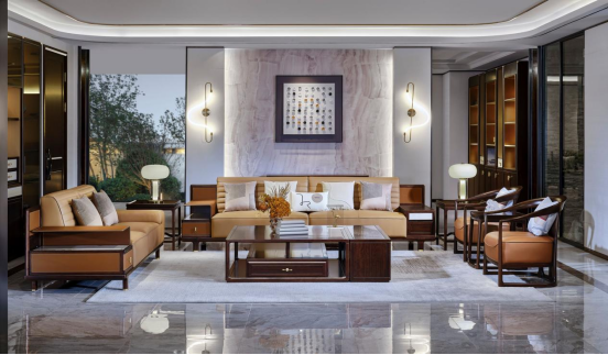 當東方經典配色與北美胡桃木相遇,東方美學的典雅高貴,便會蔓延至整個客廳所到之處,皆優雅氣息。黑胡桃木的原生態,結合皮革的現代感既保留了中式的韻味,又不會過于濃重,素雅的色調和當下流行的現代風、原木風、簡約風相得映彰,彰顯了主人非凡品味。