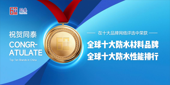 熱烈祝賀同泰新材料上榜“十大品牌”,榮獲“全球十大防水材料品牌”、“全球十大防水性能排行”等獎項!