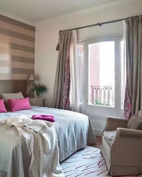 窗簾的顏色會影響我們的睡眠質(zhì)量,臥室窗簾的色調(diào)選擇,應(yīng)以房間的整體色調(diào)為基礎(chǔ),或采用相同(相近)色系,以深淺分出層次,營造出和諧靜謐的家居氛圍,可以緩解人們緊張的情緒,也可使房間變得優(yōu)雅些。而雙面窗簾可以照顧兩個色系,既不繁復(fù),又不單調(diào),在裝飾簡單的臥室里比較出彩。