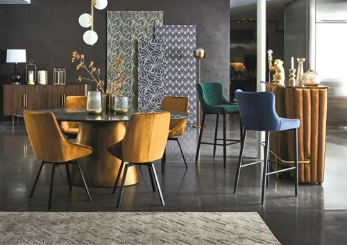 柔軟的天鵝絨與流暢的造形和迷人的曲線完美地搭配在一起,皇家藍色和深綠色通過柔和的金色裝飾增強了外觀。這種戲劇性的外觀不僅充滿魅力還能為您帶來積極的情緒影響。