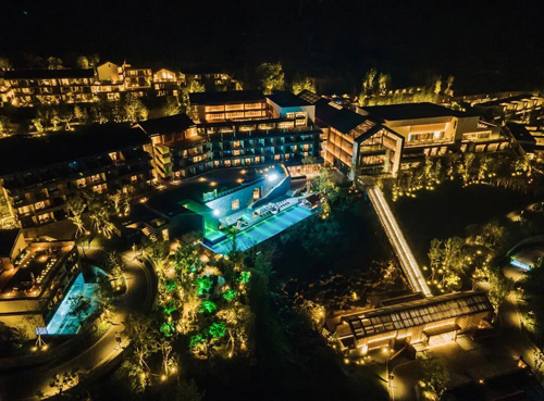 酒店整體采用木結構設計,雷士照明選用高光效防眩筒燈、洗墻燈和點光源組合,使木結構的建筑巧妙地融合在自然之中,燈光經過樹木反射,在夜色中更顯東方文化韻味。
