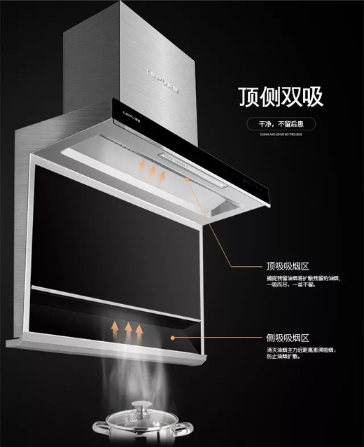 從吸油煙效果來說,同樣風量的側吸和頂吸基本不會有太大差別,理論上可能側吸會略好一點點,因為側吸安裝距離油煙更近。但一般頂吸的集煙腔更大,不容易導致油煙四散。各有優勢,整體效果相近。煙機著名品牌萊普3360A智能煙機頂側同吸,結合兩點的有優勢,讓油煙無處可逃,才能吸得凈。