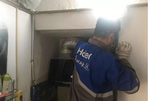進(jìn)入趙大爺家,只見不規(guī)則的狹窄的老式廚房。留給煙機(jī)爐具的位置,只有很小的一塊地方。除了這款中式的統(tǒng)帥煙機(jī),很難找到能裝進(jìn)去的其他型號(hào)煙機(jī)。趙大爺說,因?yàn)殓娗楹柈a(chǎn)品,為了買到一款能放得進(jìn)去的海爾煙機(jī),女兒跑了很多個(gè)商場(chǎng),最終選定了這款統(tǒng)帥LJS72煙機(jī)。劉師傅量了下尺寸,確定可以安裝。然后一步一步的安裝煙機(jī)。