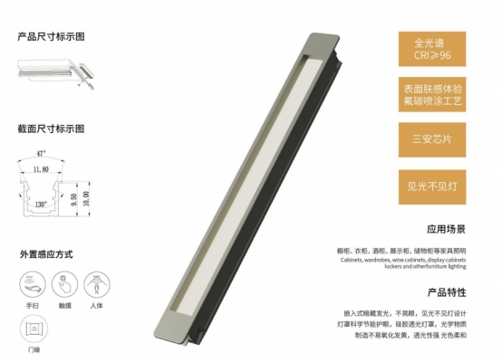 這一系列產品不僅解決了廚房吊柜下的照明問題,更為定制家居行業帶來了優質降本的燈光方案。通過深度研究各種柜體照明的應用需求,Italy唯美系列細化了16款產品,全面覆蓋家居、辦公家具及智能衛浴的燈光解決方案。每一款產品都融合了現代與意式唯美風格,去除繁冗,追求簡潔,以藝術提升空間的藝術性,打造時尚優雅的氛圍。