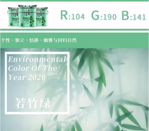 如花王水漆發(fā)布的2020年環(huán)保界流行色彩——若竹綠,清新自然的色調(diào),是希望與新生的象征,為淹沒在喧囂生活中的人們注入身、心、自然合一的平靜,帶來治愈的力量。