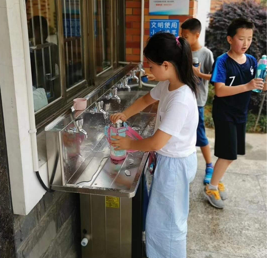 繡湖小學領導十分重視孩子們的校園飲水生活,與碧麗多次溝通飲水方案后,決定采購一批6龍頭校園直飲水機解決孩子們課間10分鐘的飲水問題。據悉,此次安裝的校園飲水機型號已在全國各地多個校園使用,均通過國家飲用水標準,深受師生的喜愛。該飲水設備采用國際知名品牌優質、高效活性炭,吸附能力強,碘值在1000以上,且無炭粉。碧麗校園溫開水機的飲用水是由100%煮開的開水降溫而成的,有效減少水中細菌,也能避免學生在取水時意外燙傷。學生只需輕輕打開水龍頭就能喝到溫度適宜、口感好的溫開水。