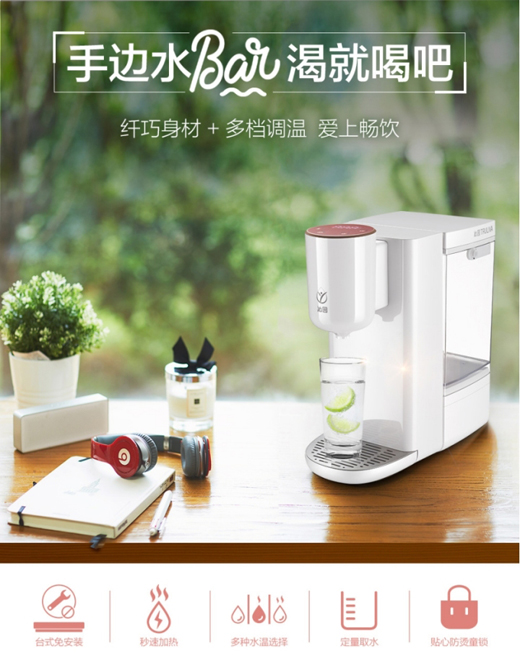 不要看它的體積小,功能卻是樣樣不缺,一應(yīng)俱全。該產(chǎn)品采用石英管速熱技術(shù),加熱速度快,實現(xiàn)即熱即飲,新鮮開水無需等待。而且其加熱體表面非常光滑,用戶不必?fù)?dān)心結(jié)水垢,充分保證加熱效率,每分鐘出水高達(dá)380ml,免去了用戶長時間等待之苦。