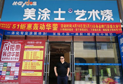 2016年11月四川華鎣美涂士藝術涂料經銷商張治富開始經營美涂士知名藝術涂料品牌,僅在1年時間內,在當地連續新開3家美涂士藝術涂料門店。優秀的服務與產品,可持續的經營理念,造就他在當地的良好口碑,并讓其生意越來越好,市場擴張速度飛快。“好品牌,好服務,好口碑,自然有好盈利。”