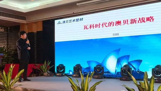 瓦科涂料副總經理羅振明進行了《破局•蝶變——澳貝藝術壁材重整再出發》的重要講話。羅振明剖析了夫妻零售店、產品同質化嚴重等行業痛點,對此他提出了建立合伙人制度,公司化運作,創新個性化、差異化產品等破局應對措施 。羅振明表示接下來,瓦科涂料會緊密圍繞客戶需求,重點實施將肌理壁膜的產品標準化、設計標準化、色彩標準化、工藝標準化、服務標準化,工藝標準化流程體系,導入到澳貝藝術壁材產品中。