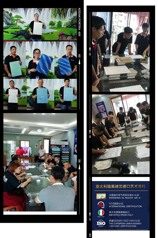 眾所周知,藝術(shù)涂料相比傳統(tǒng)涂料而言更加注重效果,因為效果是性能的直接體現(xiàn),所以其施工工藝至關(guān)重要。基于此,路易詩蘭工藝部部長龔藝強給大家進行了了科摩、安科娜、詩蒙、維爾維等多種工藝的培訓,希望將更好的產(chǎn)品帶給消費者。