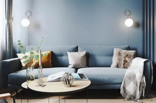 藍色,代表優雅、純粹,純水藍色彩,視覺上柔和而充滿質感,對眼睛非常友好,在墻面應用上適用性也非常之高。