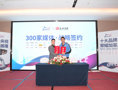 短暫的休息過后,在全體家人們的共同見證下,英尼斯特副總經理鐘優利和市場總監馬梓銘分別與央視代表和媒體代表進行合作簽約儀式。這代表著英尼斯特的品牌推廣計劃正式落地,相信在央視及權威媒體的影響力加持下,英尼斯特未來的發展之路必能一馬平川!