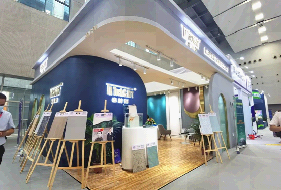 此次亮相廣州建博會,是泰詩爾全新跨界產(chǎn)品——“生態(tài)壁膜板”的首度亮相。生態(tài)壁膜板仍以肌理壁膜作為核心要素,但又與肌理壁膜有所不同。肌理壁膜仍屬于藝術(shù)涂料的“一次元”,是一種“半成品”,而它是一款三維立體化產(chǎn)品,實現(xiàn)由“面”到“體”的蝶變,達(dá)到更進(jìn)一步的“所見即所得”的效果屬性。在工廠提前做好涂裝,色彩和效果均可定制,再直接拿到現(xiàn)場進(jìn)行標(biāo)準(zhǔn)化、定制化的拼裝即可。表面上可以看起來很像大理石,非常逼真,改變了過去同類產(chǎn)品人工成本大、周期長、成本高等問題。
