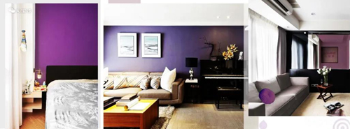 灰、白空間搭配黑加侖紫色布藝、地毯、墻面等,營造出浪漫高雅的視覺效果。用于客廳或臥室等處,為家居空間注入氣質,提升家居的整體魅力。