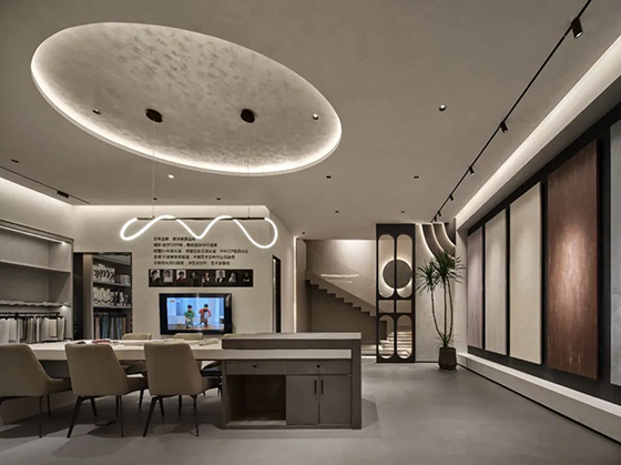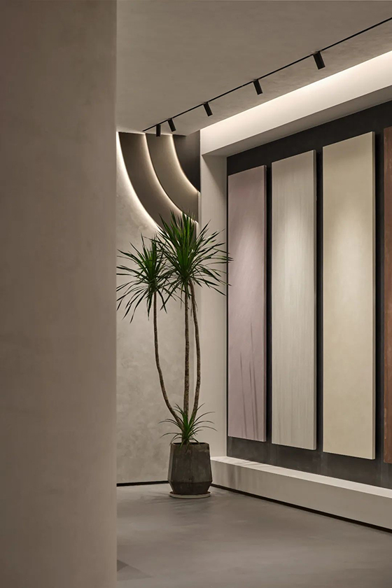 設(shè)計(jì)師懷著一種對(duì)「意大利藝術(shù)」的敬畏之心,將空間視為有機(jī)物,使其在重構(gòu)、釋放、控制、動(dòng)態(tài)平衡中突顯產(chǎn)品的內(nèi)在氣質(zhì)與功能的延伸性。不同空間之間模糊邊界,在疊加組合中保持各自的個(gè)性,再組成一個(gè)整體,讓色彩、陳列與布局保持統(tǒng)一的和諧關(guān)系。