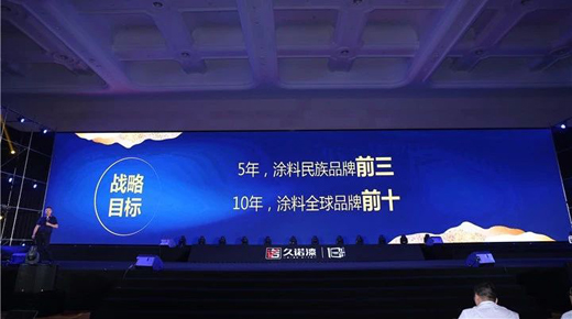 然而在本次十周年慶典上,除了在會前播出的宣傳片中提及“上市”目標,久諾對于IPO的計劃未見提及。取而代之的是“2023年銷售過百億”“5年,涂料民族品牌前三”“10年,涂料全球品牌前十”的戰略目標描述。按照當前久諾的實力,要想達成這樣的目標定位可謂“任重而道遠”。