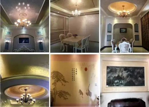 可塑性強(qiáng),可以制作出多種藝術(shù)肌理效果,隨著藝術(shù)涂料應(yīng)用的普及,更多的室內(nèi)設(shè)計師、業(yè)主客戶、專業(yè)涂料施工師傅充分發(fā)揮創(chuàng)造才能,會有更多的肌理藝術(shù)造型不斷推向市場。