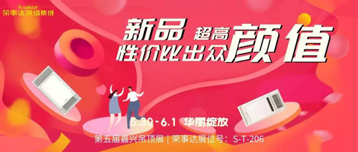2019年,應對競爭更加激烈的市場格局,榮事達頂墻繼續渠道深耕,擴大網點布局,擴大電器批發商板塊,第五屆嘉興吊頂展。5月30日-6月1日,紅海行動再升級,這一次我們攜系列高性價比新品浴霸,有備而來,期待與您浪漫邂逅,共創光明未來!