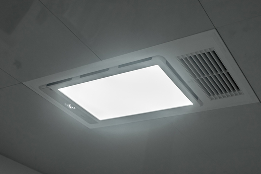 最常用到的功能當然就是照明了,由于舊浴霸也支持照 明功能,所以這個衛生間我一直沒有另外裝吸頂燈,全靠浴霸的燈來進行照明。但舊浴霸采用的是傳統的燈管,又昏暗又容易壞,這幾年都不知道換過幾次了,而這個新浴霸采用的是12W的LED照明燈,光源達14.5寸,能輕松把整個衛生間照亮,亮堂堂的感覺真好。