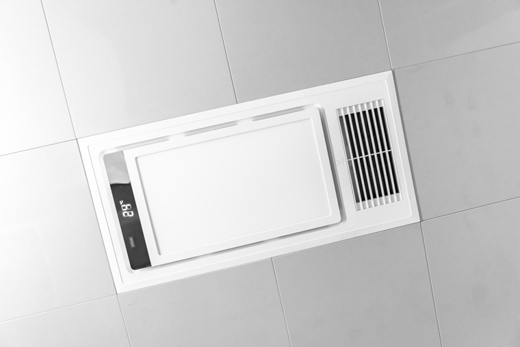 浴霸面板上還有一小塊LED顯示屏,可以通過內置的智能溫濕度感應器來實時檢測浴室溫度,并自動調節功率大小,改變熱風溫度,實現室內溫度恒定,而且一旦出現過熱便會自動斷電。