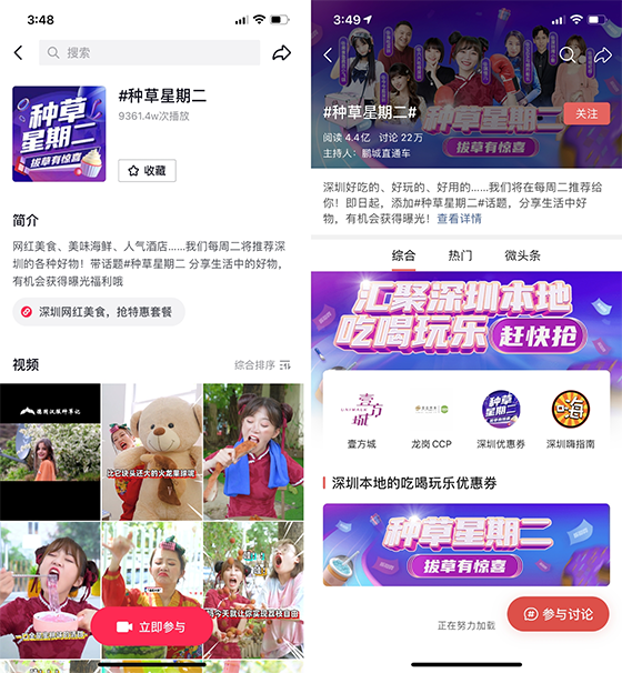 【種草星期二】是巨量引擎深圳本地直營(yíng)中心首個(gè)城市生活消費(fèi)IP,由深圳市商務(wù)局指導(dǎo),每周二定期推出特惠活動(dòng),鏈接平臺(tái)方、B端客戶、C端及線下消費(fèi)場(chǎng)景,持續(xù)利用抖音力量、明星達(dá)人、合作方等多方資源,來(lái)吸引用戶消費(fèi)及內(nèi)容生產(chǎn)UGC,提升商家銷售額,實(shí)現(xiàn)傳播破圈!