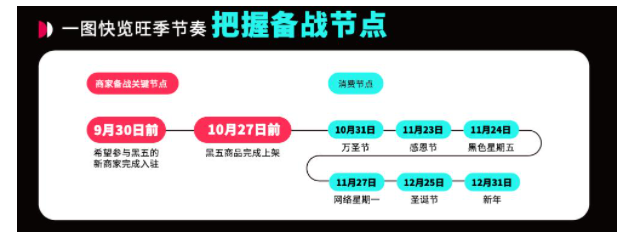 為了讓跨境商家們更好地參與黑五大促,TikTok Shop官方發布了一份時間表。根據該時間表,有意向參與黑五大促的跨境商家們需要在9月30日前完成入駐,10月27日前完成商品上架。這將為他們提供一個充分的時間來準備和推廣自己的商品,以滿足消費者的需求和期望。