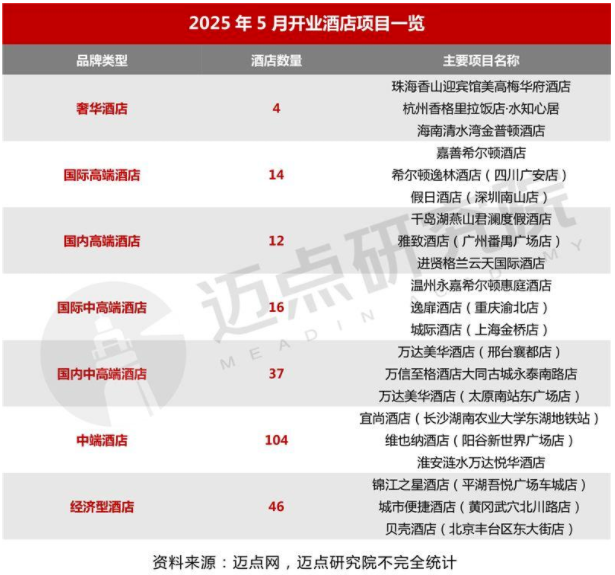 酒店之家發(fā)布的《2025中國(guó)酒店投資白皮書》顯示,截至2024年12月31日,全國(guó)酒店總量突破37萬家,客房規(guī)模超1850萬間(15間客房及以上)。據(jù)邁點(diǎn)研究院不完全統(tǒng)計(jì),2025年5月新開業(yè)酒店共計(jì)233家。