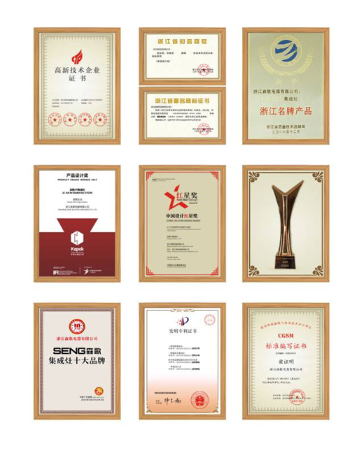 森歌是《集成灶標(biāo)準(zhǔn)CJ/T386-2012》的主要起草單位、《集成灶浙江制造標(biāo)準(zhǔn)》主要起草單位、《集成家裝產(chǎn)品售后安裝技術(shù)規(guī)范》行業(yè)標(biāo)準(zhǔn)的起草單位,擁有四項(xiàng)國(guó)家發(fā)明專利及80余項(xiàng)實(shí)用新型專利和外觀設(shè)計(jì)專利。A9集成灶更是行業(yè)唯一一款同時(shí)獲得金勾獎(jiǎng)、紅棉獎(jiǎng)、紅星獎(jiǎng)的集成灶。