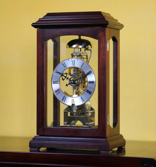 此座鐘工藝復雜細致,將機芯的雍容華貴,大紅酸枝的穩重大氣完美的結合在一起,富麗堂皇而又不失古典意韻。
