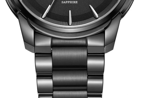 近年來,作為莊重色調的黑被運用到各種流行潮品中,像黑色鞋子、鍍黑汽車、黑色掛飾等等都備受年輕男性追崇,黑色元素被視為現代藝術。這款表大膽運用真空離子電鍍黑技術,讓腕表整體呈現一個“黑武士”風格。表盤與以往表款的盤面設計風格不一樣,首先盤面采用單卜類的設計風格,表盤邊沿為“下沉式”設計,讓表款在美感上更加前衛、立體,也能更清晰的讀取時間。為了與表款產生和諧美感,立體的貴妃型指針與刻度比列恰到好處,并沒有過分追求運動表那種粗狂,并且清晰明了。