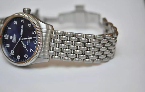 七拼式表鏈,相較于傳統鋼鏈來說,它的易彎曲程度更高,更加貼合男士腕部曲線,無論是在充滿汗水的悶熱夏天,亦或是被重重包裹的寒冷冬天,絲毫不顯累贅感。