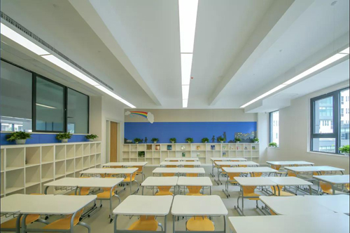 值得一提的是,2021年,雷士照明推出了新教室照明解決方案 “9+3”,既以9套面板燈+3套黑板燈為基礎(chǔ),針對(duì)當(dāng)前教室照明所存在的問題,打造最簡(jiǎn)潔和舒適的教室光環(huán)境,既沒有多余的燈具造成視線遮擋,又能滿足照明需求,參數(shù)高于國家教室照明標(biāo)準(zhǔn)。
