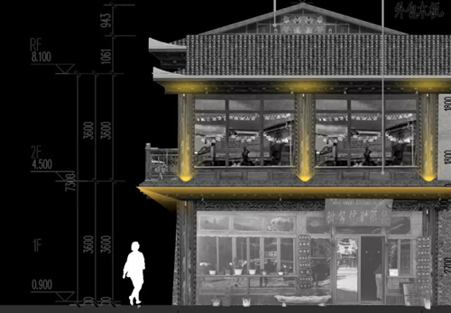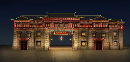 項目入口門樓碉房為石木結構,外形端莊穩固,風格古樸粗獷,蘊含濃郁的藏族建筑風情。因此該區域照明采用自下往上的照明方式,表現石材的質感,體現古樸粗獷的風格。在通道上的冉冉的火炬裝飾燈,增加空間的照明層次,體現藏族人民的熱情。