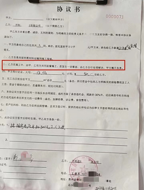 王崇軍表示,賣瓦蓋瓦不只是買一個(gè)產(chǎn)品,更是一個(gè)服務(wù)過程!好的產(chǎn)品固然重要 ,但同樣離不開好的施工和服務(wù)!施工好做出來的整體效果才好,目前他的施工團(tuán)隊(duì)全是經(jīng)驗(yàn)豐富的老師傅,不僅手藝好,而且對施工要求非常嚴(yán)格,施工用瓦、用料、都會清晰的體現(xiàn)在合同中!就連工程安全方面他也為客戶考慮的非常周到,在合同中特別標(biāo)注了一條:施工過程中出現(xiàn)的意外均有工程方負(fù)責(zé)!光憑這一點(diǎn),就讓很多用戶放心的選擇他!