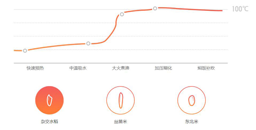 米家電飯煲擁有智能口感控制技術,通過程序控制溫度曲線實現智能化調控米飯口感。從技術角度看,純米通過對京東、一號店等電商銷量TOP100的大米數據統計,以及北上廣等城市主要超市所售袋裝品類大米的實際測試和數據錄入,擁有約1417噸大米的溫度曲線,可定制3000余種煮飯加熱方案。當用戶新買大米之后,利用手機App掃一掃條形碼,電飯煲就能自動匹配相應煮法,何時高火沸煮、何時文火慢燒、加壓多少等都可以數據查看。